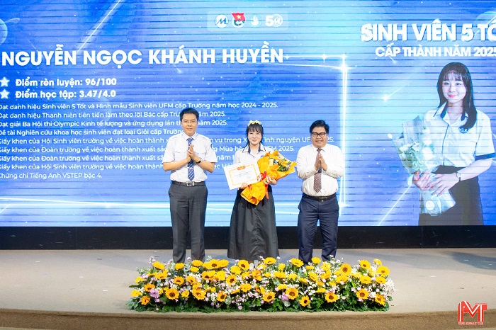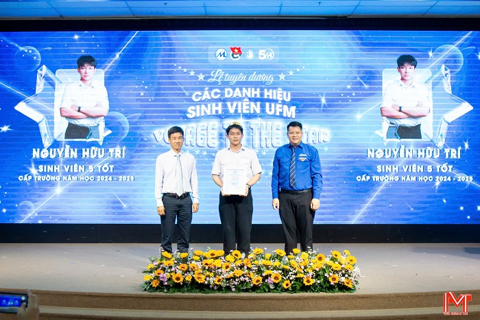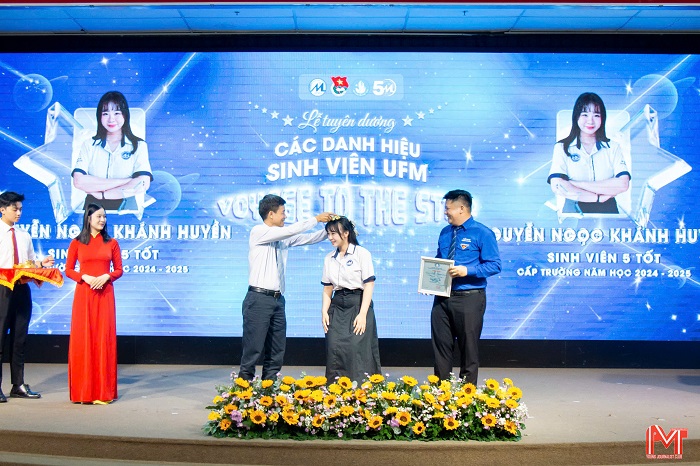 Bên cạnh đó, buổi lễ cũng đã vinh danh và biểu dương 09 gương sinh viên tiêu biểu đạt danh hiệu Sinh viên 5 tốt Thành phố Hồ Chí Minh năm 2025, 93 cá nhân đạt danh hiệu Sinh viên 5 tốt cấp Trường năm học 2024 - 2025 và 268 cá nhân đạt danh hiệu Hình mẫu Sinh viên UFM cấp Trường năm học 2024 - 2025.