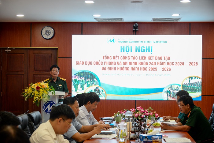 Chiều ngày 11/8/2025, Trường Đại học Tài chính – Marketing đã tổ chức Hội nghị tổng kết công tác liên kết đào tạo Giáo dục quốc phòng và an ninh khóa 24D năm học 2024 – 2025, định hướng năm học 2025 – 2026.