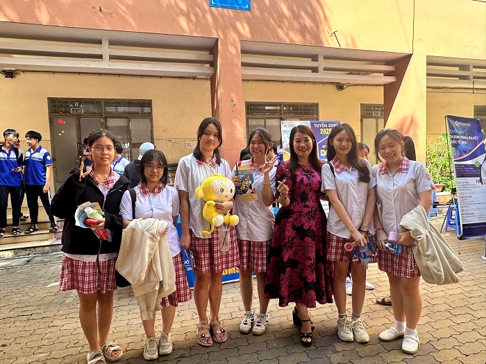 Không khí tại gian tư vấn của UFM ghi nhận sự sôi nổi sau phiên tư vấn chung. Đông đảo học sinh lớp 12 nán lại đặt câu hỏi trực tiếp về phương thức xét tuyết đại học, các chương trình đào tạo hiện có của UFM, triển vọng nghề nghiệp ở các ngành thế mạnh như Marketing, Quản trị kinh doanh, Tài chính – Ngân hàng, Kinh doanh quốc tế, các chương trình liên kết đào tạo với các nước Anh, Pháp. Mỹ, Canada, Malaysia…các chính sách trao đổi du sinh viên như thế nào?. Thay vì đưa ra câu trả lời “mẫu”, đội ngũ tư vấn UFM lựa chọn cách tiếp cận cá nhân hóa, lắng nghe băn khoăn, phân tích trường hợp cụ thể và gợi ý lộ trình học tập tương ứng.