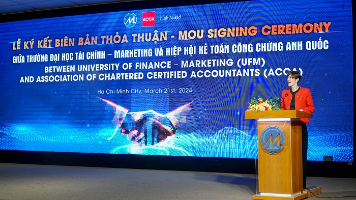 Sáng ngày 21/3/2024, Trường Đại học Tài chính - Marketing (UFM) và Hiệp hội Kế toán công chứng Anh Quốc (ACCA) đã tổ chức lễ ký kết hợp tác và khai trương trung tâm thi trên máy linh hoạt của ACCA tại UFM.