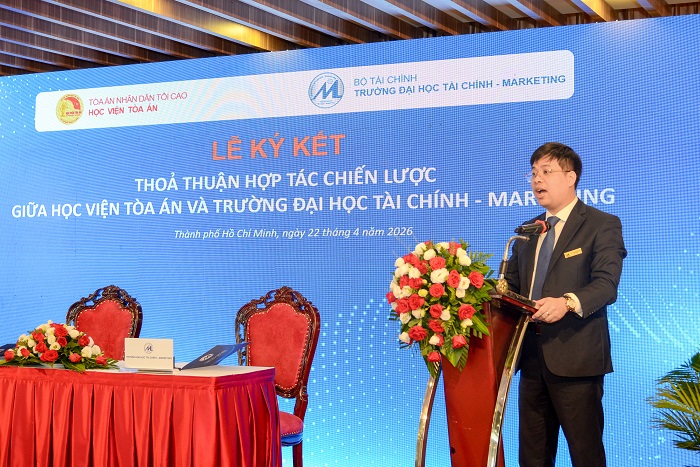 Sáng 22/4/2026, Trường Đại học Tài chính – Marketing (UFM) và Học viện Tòa án (VCA) long trọng tổ chức Lễ ký kết thỏa thuận hợp tác song phương, đánh dấu bước phát triển mới trong quan hệ phối hợp giữa hai cơ sở đào tạo, nghiên cứu; đồng thời mở ra cơ hội tăng cường gắn kết giữa đào tạo, nghiên cứu khoa học và thực tiễn hoạt động tư pháp.