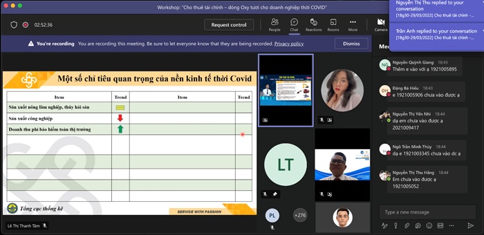 Tại buổi workshop, các diễn giả đã giới thiệu và giúp sinh viên Nhà trường hiểu rõ thêm về lĩnh vực “Cho thuê Tài chính” như: Cho thuê tài chính là gì? Những đặc điểm mới của ngành cho thuê tài chính so với ngân hàng truyền thống? Những bức phá của lĩnh vực này trong thời COVID?
